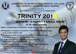 Two, its a great honour to speak at the prestigeous Trinity Conference in its eighth year that attracted a large number of medical students from across the world as well as many luminaries that included his own teachers from LTMG.